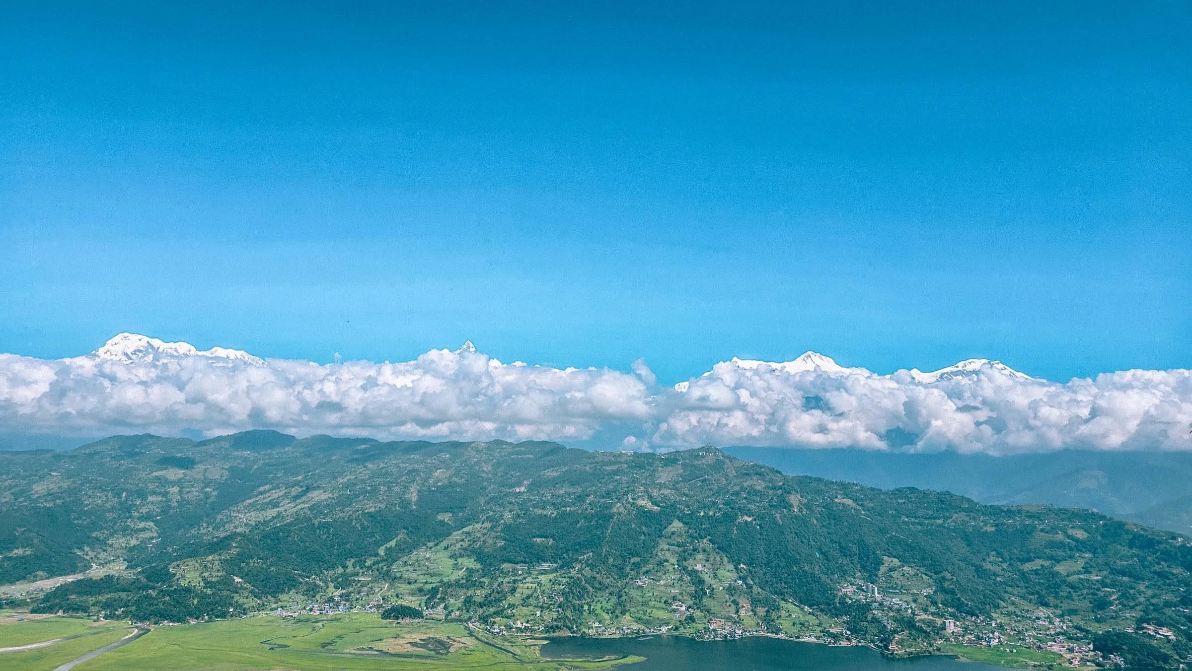 The next day, we drove across the mountains to beautiful Pokhara, enjoying the stunning views of the Annapurna Range. The mountains are lush and picturesque, with terraced fields everywhere.